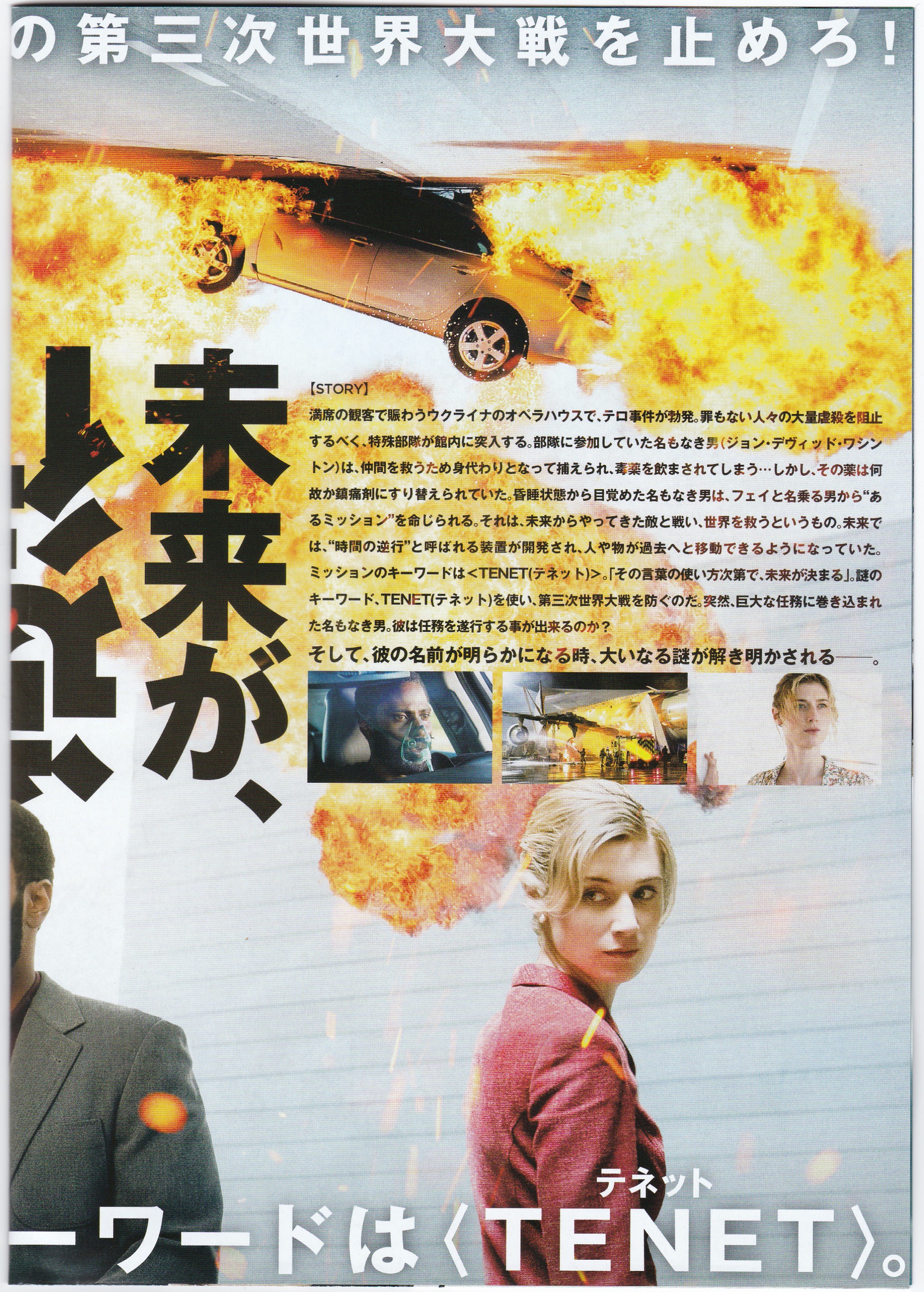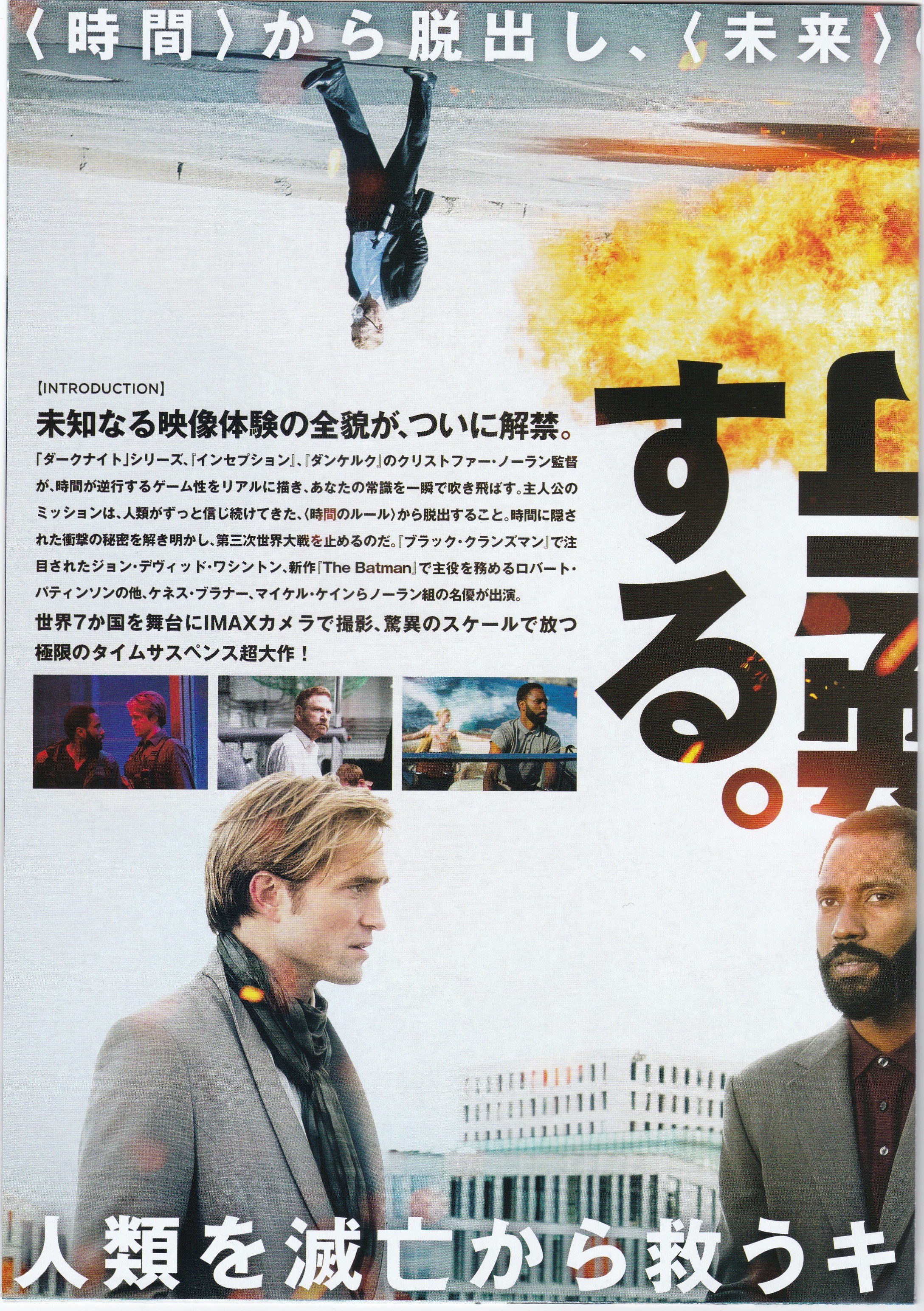 謎のキーワード、TENET(テネット)を使い、第三次世界大戦を防ぐのだ。突然、巨大な任務に巻き込まれた名もなき男。