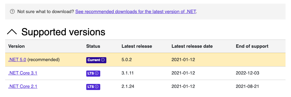 .NET 5.0, .NET Core 3.1은 2021년 1월 12일 같은 날 릴리즈 되었다. -> 서로 간 호환성 조정을 해서 같은 날?