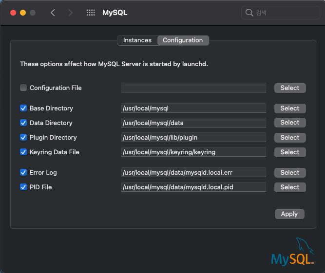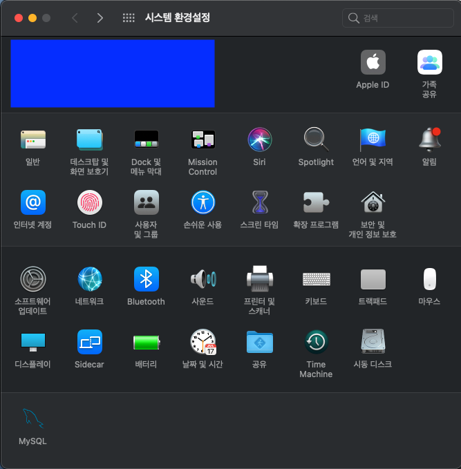 시스템환경설정에 MySQL의 메뉴가 추가됩니다.