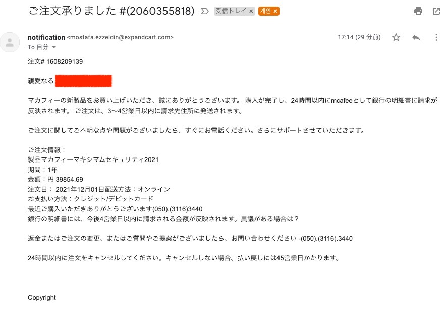 주문하지 않았고 메일주소도 이상해서 당연히 뻔한 피싱메일로 생각하고 삭제 하려했는데 내 이름이 떡하니 적혀있습니다.
