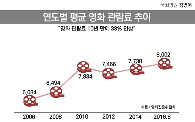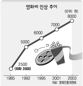 한국의 영화 티켓 가격의 변화를 조사해봅니다.