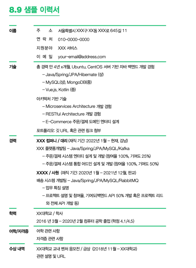 중요한 내용, 최근 경력부터 시간순으로 작성